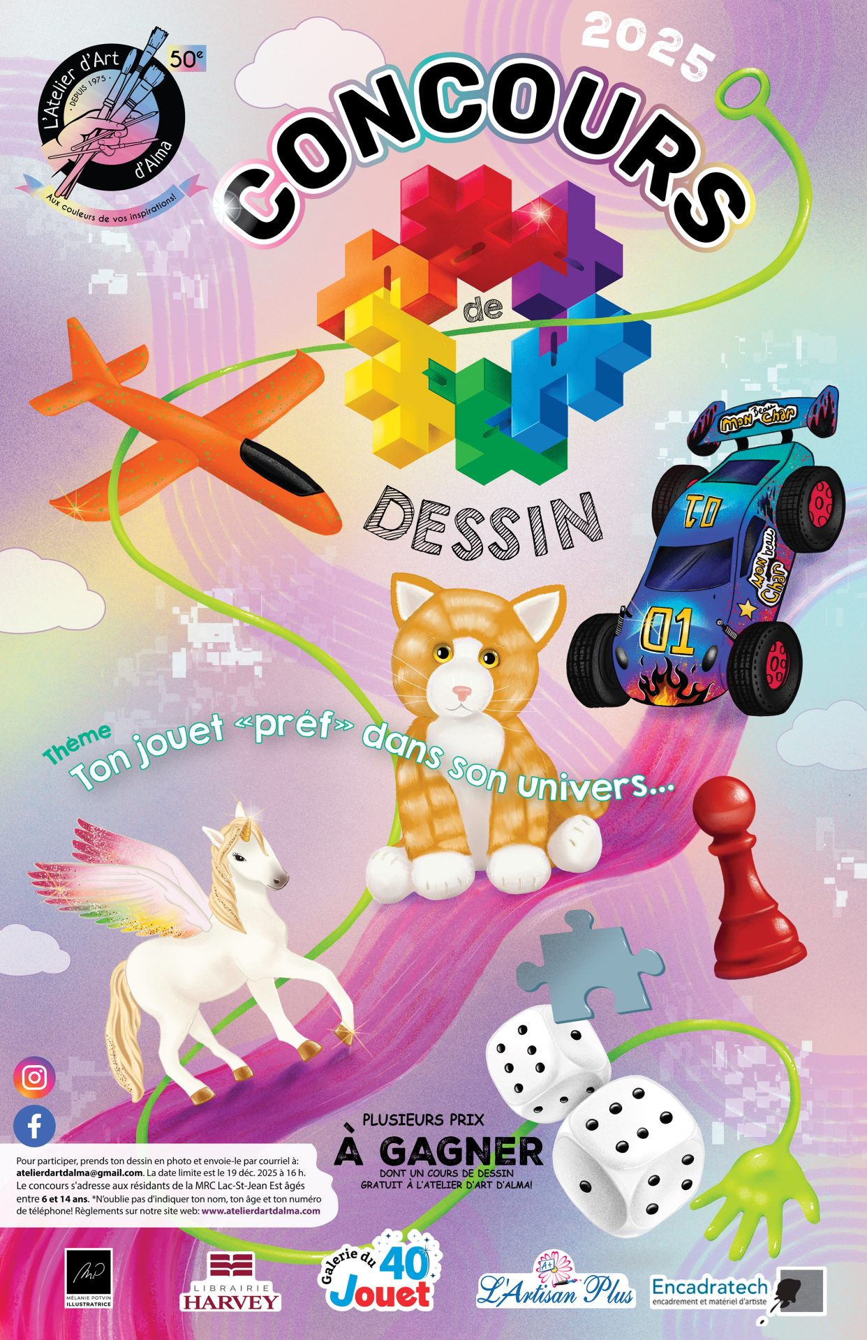 Voilà l’occasion de créer un dessin original et gagner l’un de nos fabuleux prix. ✍️ Un cours de ton choix gratuit à l’Atelier d’Art ou des paniers cadeaux de nos commanditaires.