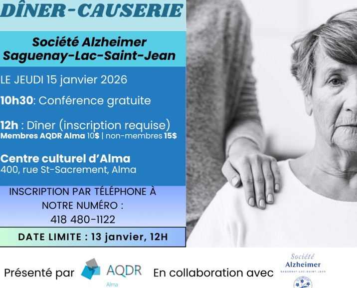 Dîner-causerie de l’AQDR Alma : Société Alzheimer du Saguenay-Lac-Saint-Jean