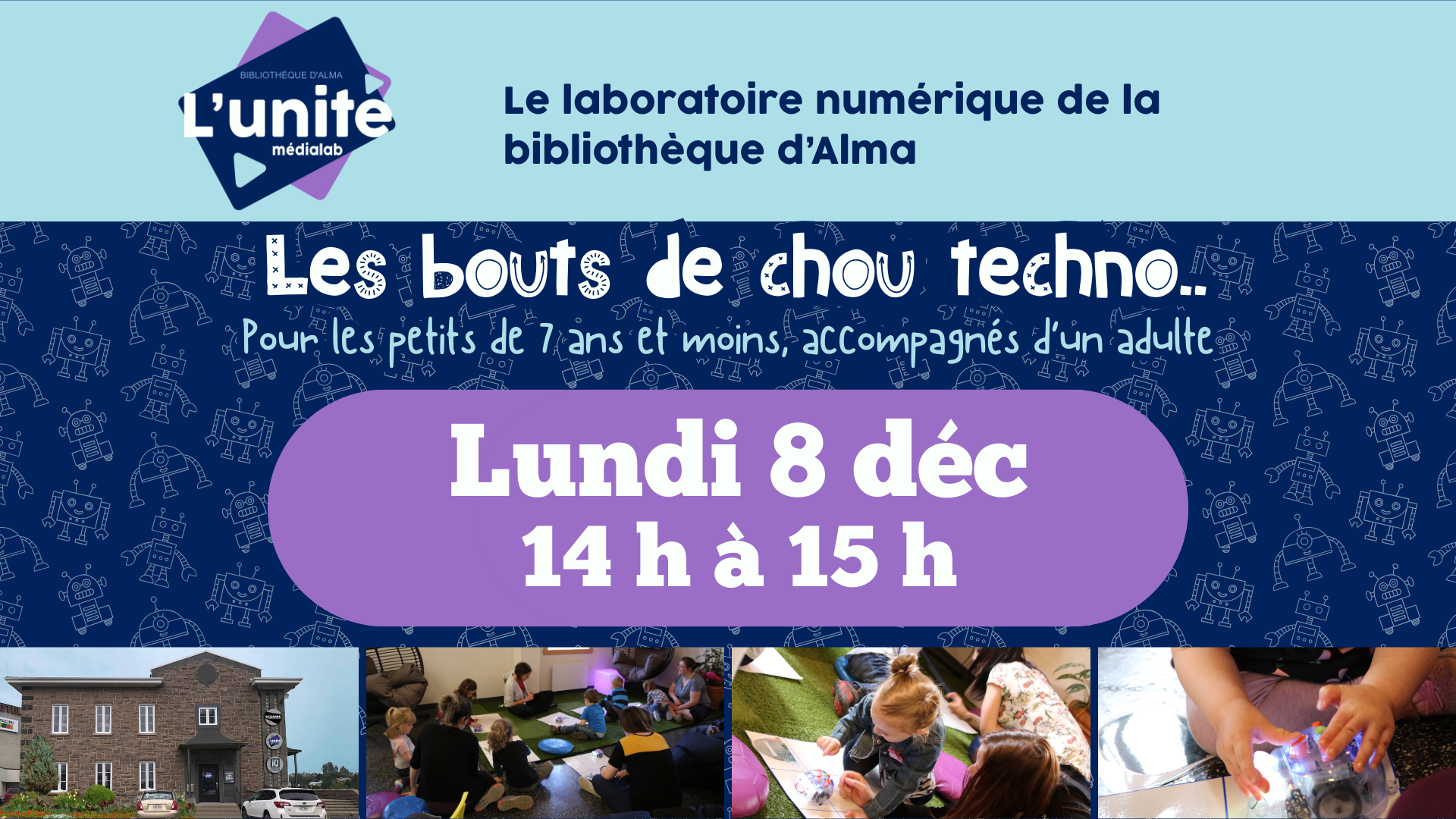 Ce n’est pas parce qu’on est petit qu’on n’est pas techno! À l’Unité médialab, viens vivre une lecture animée, suivi d’un jeu de robotique sur le thème de la lecture. Une activité adorée de tous!