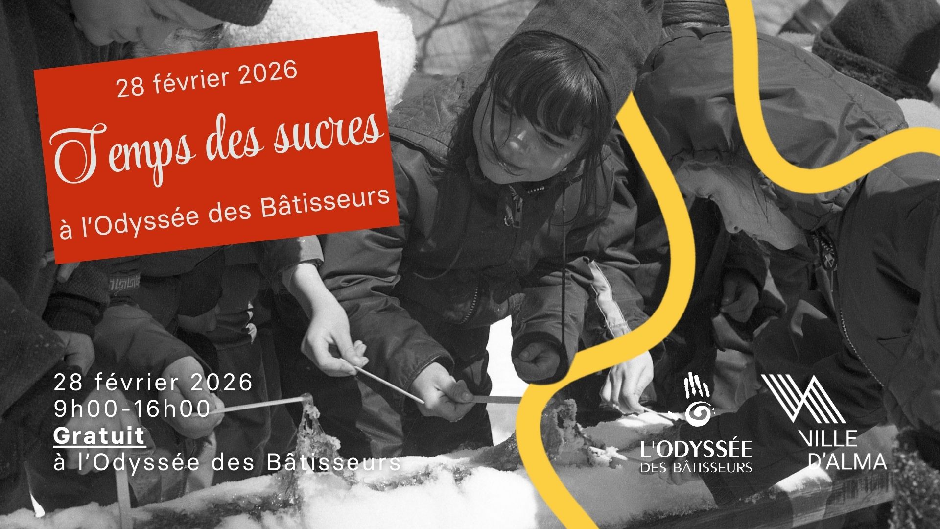 Le 28 février prochain, venez célébrer notre traditionnelle journée du temps des sucres à L’Odyssée des Bâtisseurs, à Alma ! Plusieurs activités seront au programme :