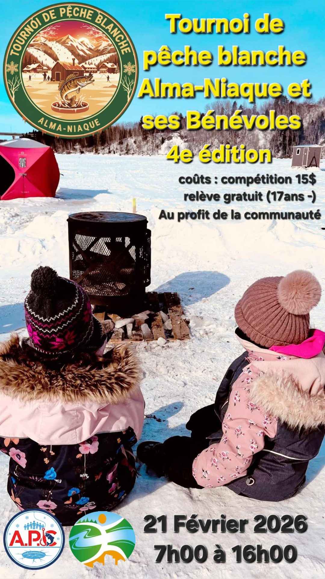 Il s’agit du Tournoi de pêche blanche Alma-Niaque et ses Bénévoles, la 4e édition.