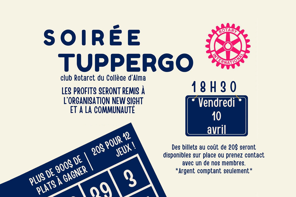 Soirée Tuppergo 10 avril @ 18h30 - 21h30 Centre Mario-Tremblay 605, boulevard Saint-Luc, Alma 🎉 Soirée Tuppergo au profit de la communauté! Le club Rotaract vous invite à une soirée […]