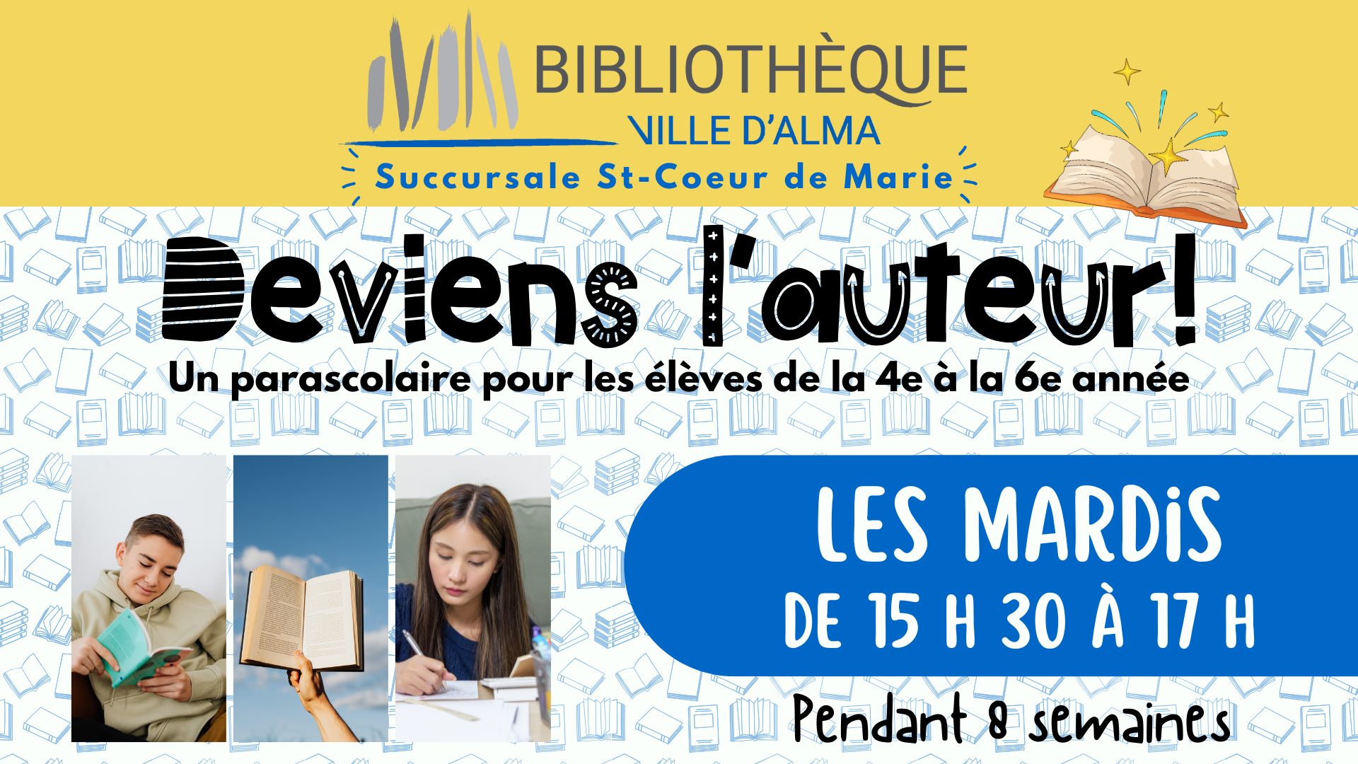 Une exclusivité à la bibliothèque de St-Coeur-de-Marie! Un parascolaire pour les jeunes mordus de lecture et […]