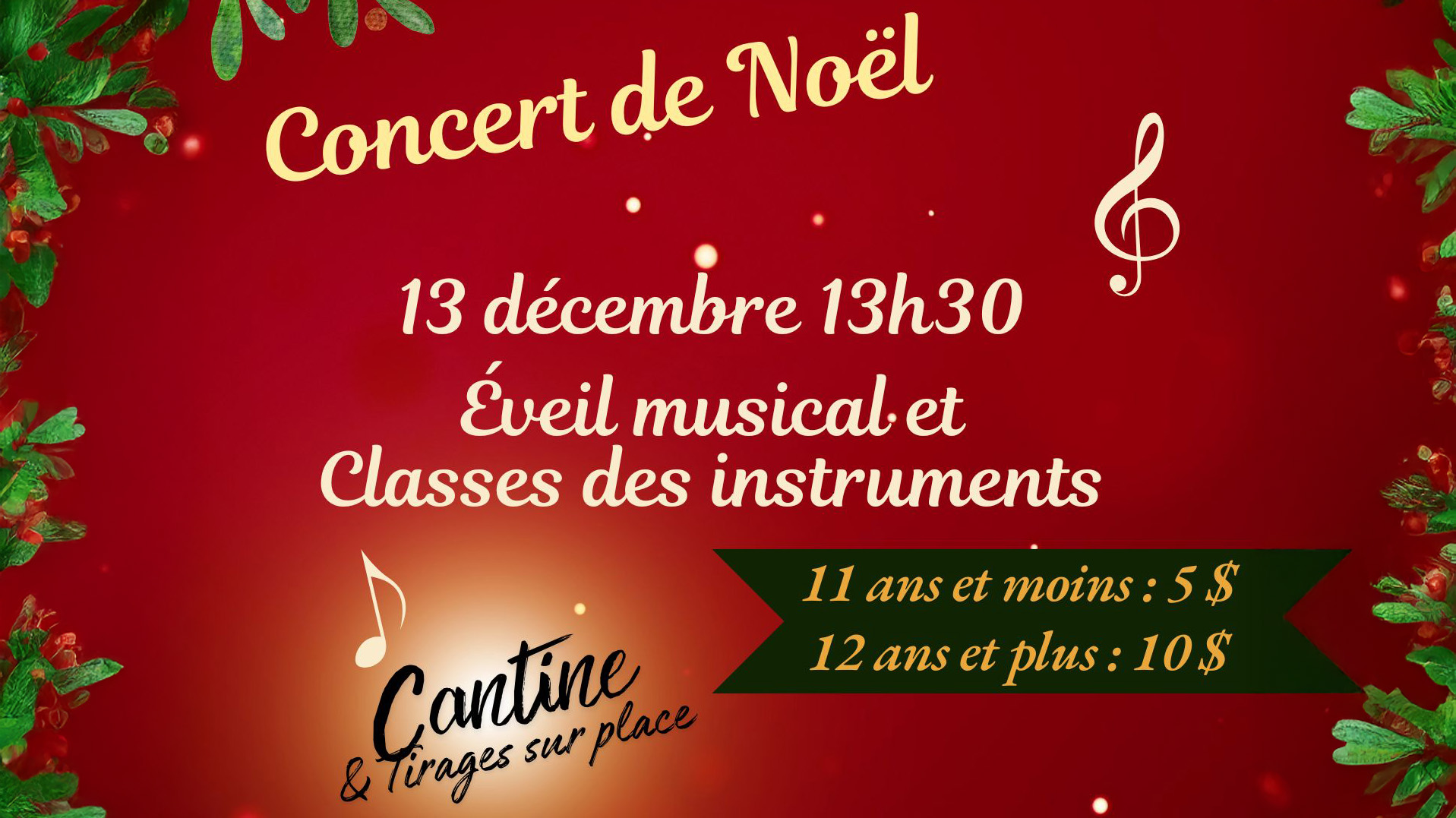 13 décembre @ 13h30 - 15h00 Concert de Noël – Éveil musical et Classes des instruments (École de Formation Musicale d’Alma) Centre culturel 400, rue Saint-Sacrement Ouest, Alma Venez en grand nombre encourager nos élèves qui ont travaillé toute la session pour monter sur […]