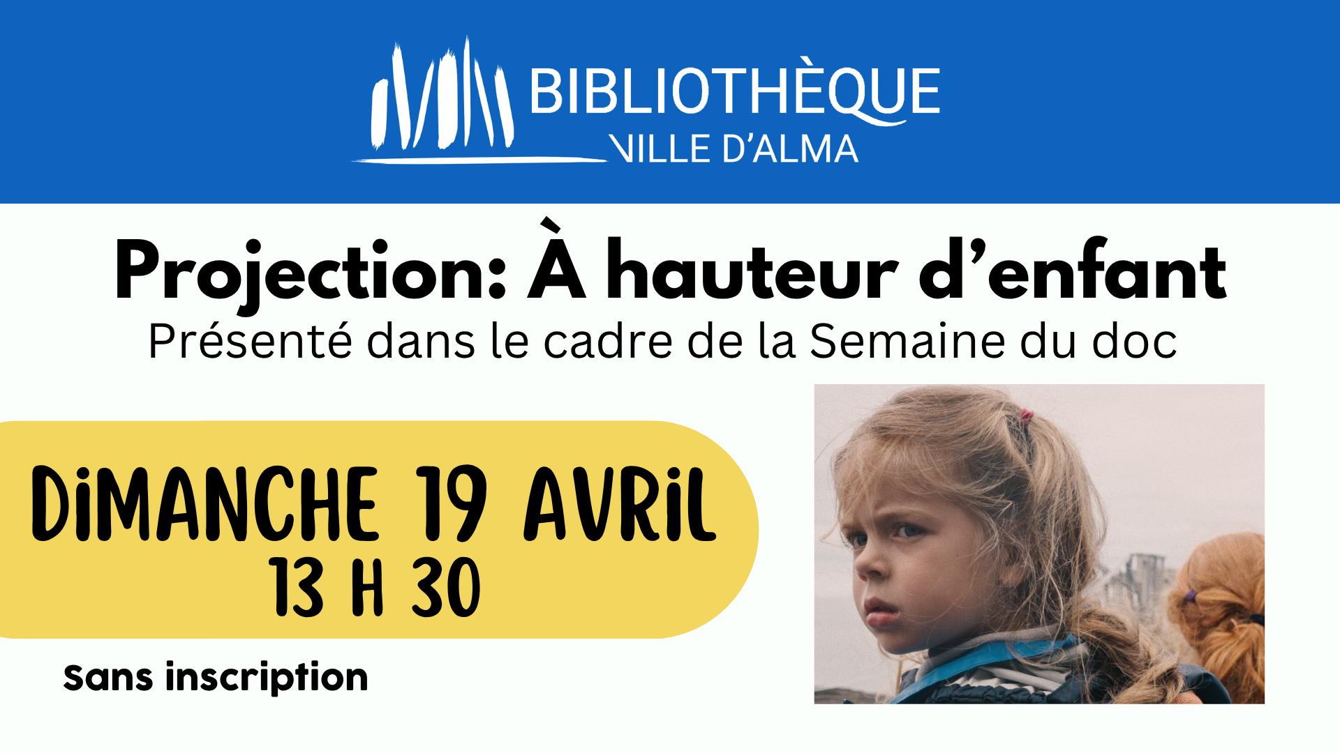 Dans le cadre de la Semaine du Doc, la bibliothèque d'Alma est fière de présenté le […]