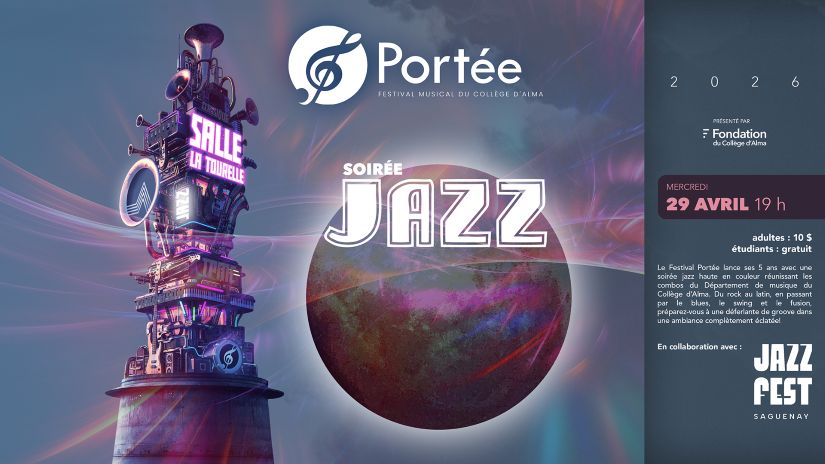 Festival Portée ; Soirée jazz 29 avril @ 19h00 - 21h00 Collège d'Alma 675, boulevard Auger Ouest, Alma En collaboration avec le Festival Jazz et Blues de Saguenay Le Festival Portée lance ses 5 […]