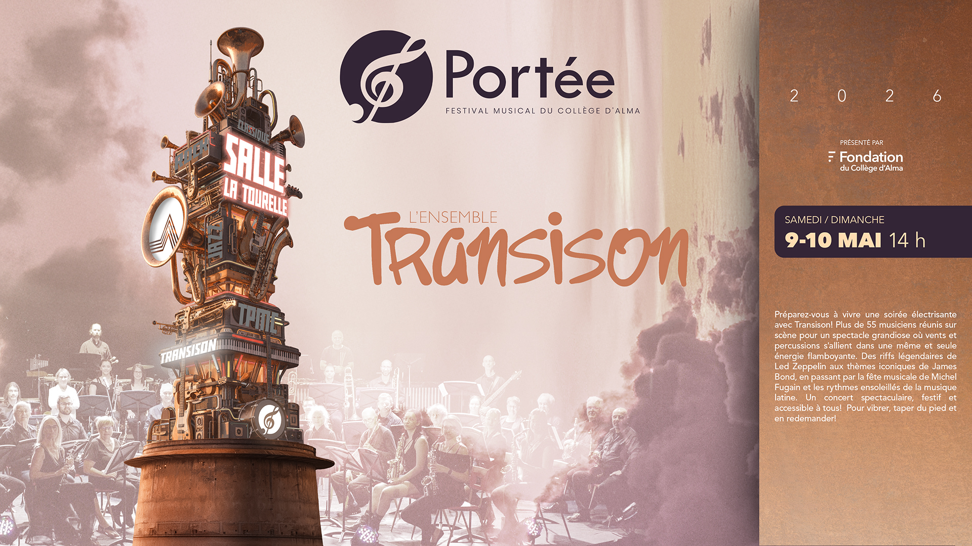 Festival Portée : Harmonie TransiSon 9 mai @ 14h00 - 10 mai @ 16h00 Collège d'Alma 675, boulevard Auger Ouest, Alma Préparez-vous à vivre une soirée électrisante avec TransiSon! Plus de 55 musiciens réunis sur scène pour […]